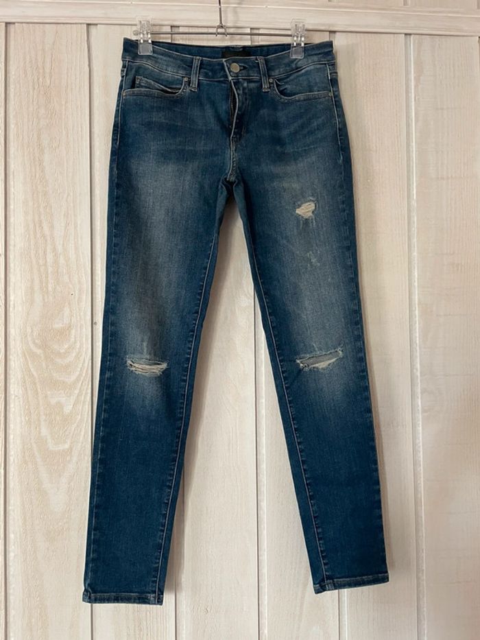 Jean bleu troué effet usé Marque Uniqlo Taille 36 Très confortable, élastique, près du corps