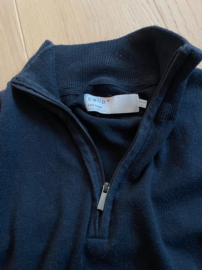 Pull fin marine col camionneur Collection « Soft touch - Le pull tout doux » Légèrement « bouloché » (cf photo) Marque Celio Taille L Étiquette composition coupée