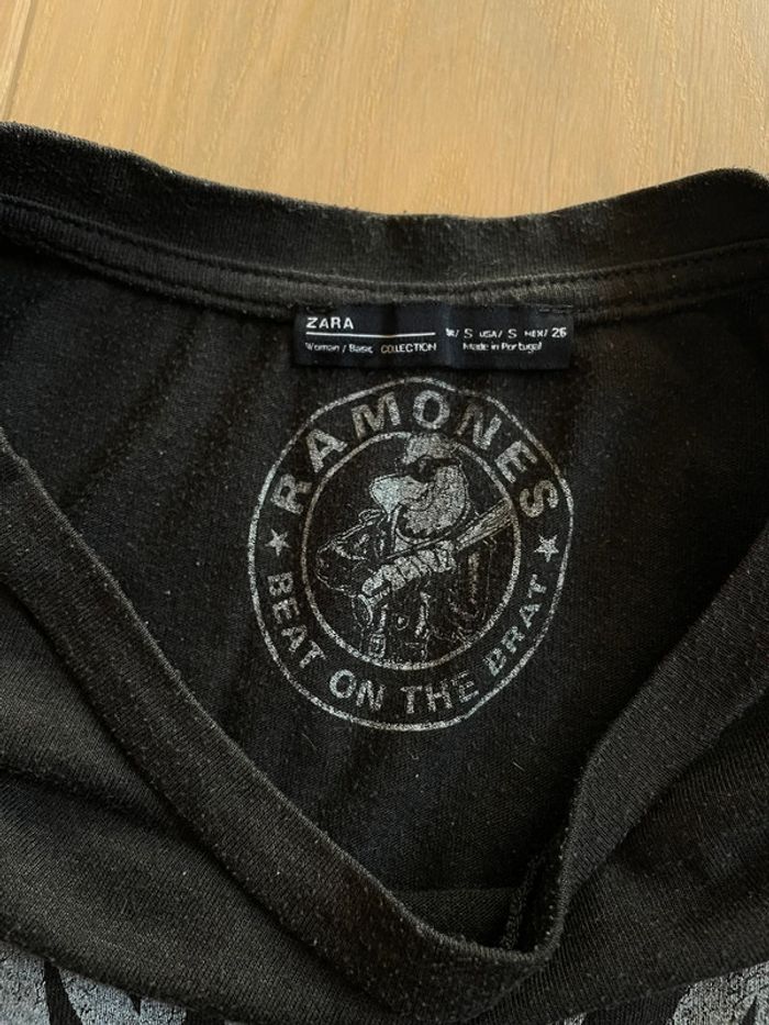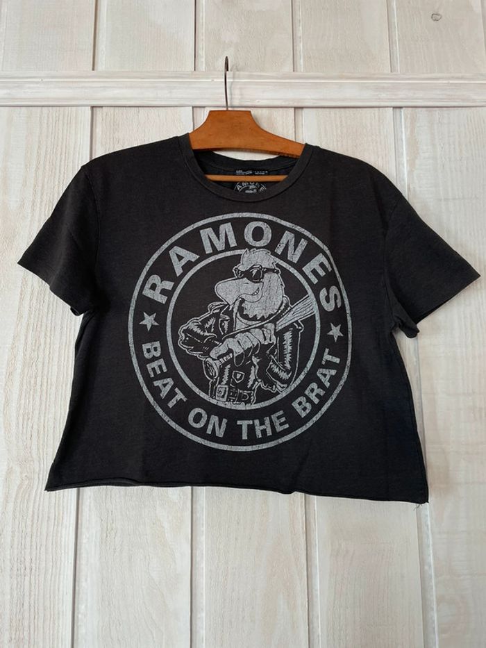 Tee-shirt manches courtes crop-top gris foncé Ramones beat on the brat Légèrement bouloché (cf photo) Marque Zara Taille S