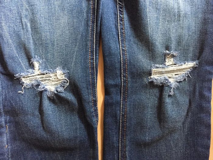 Pantalon jean assez court (7/8ème) avec déchirures environ aux genoux Pas de marque Taille 38 #sdelandeF38