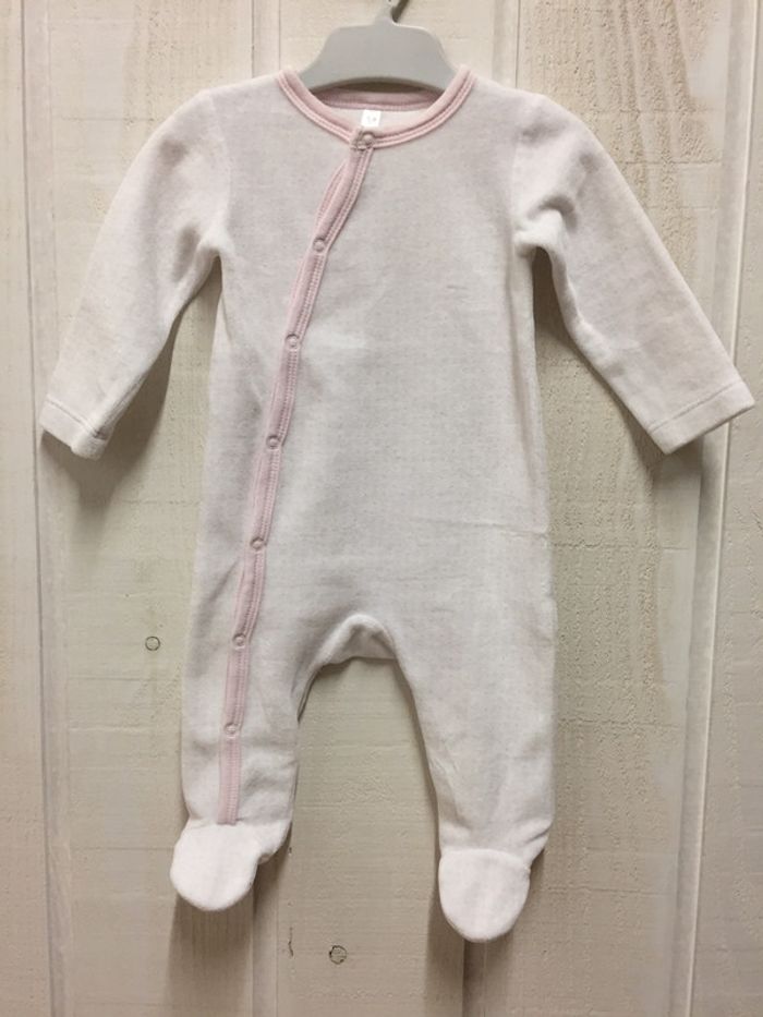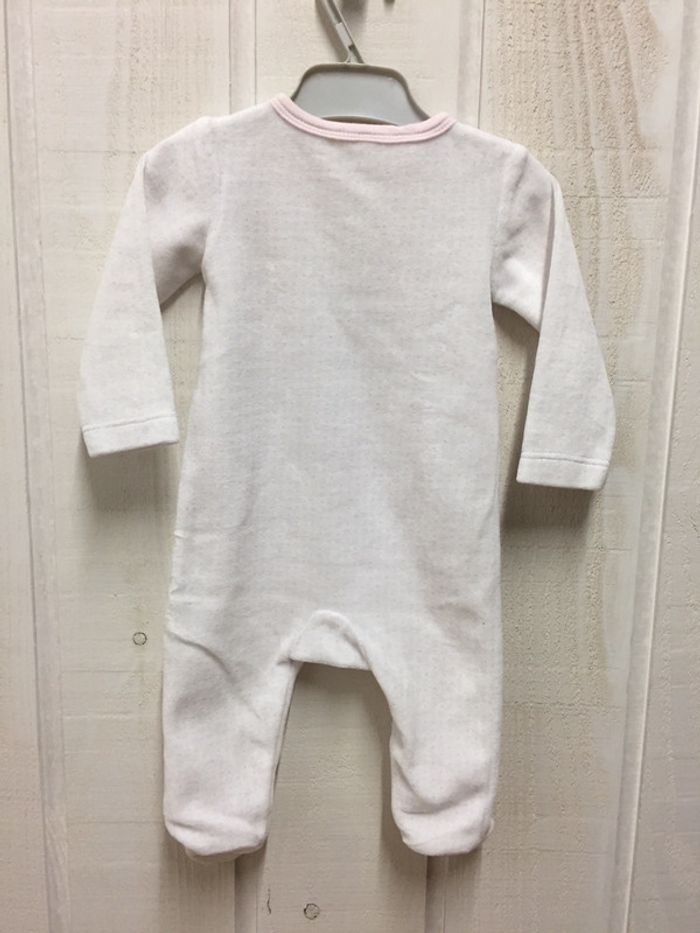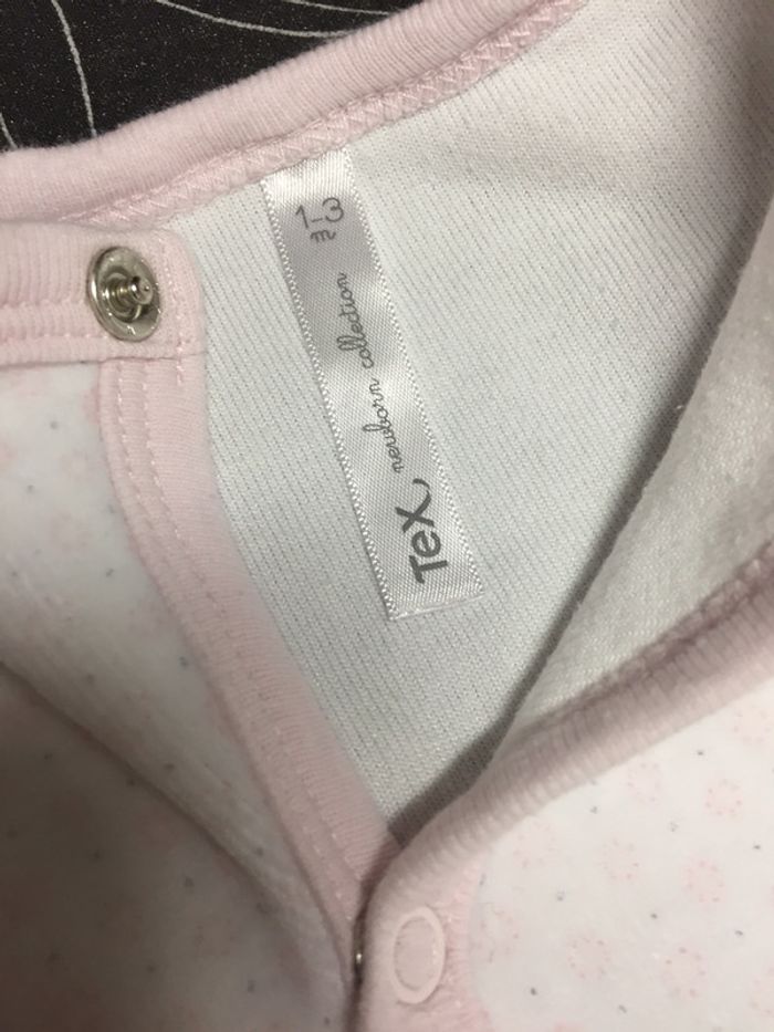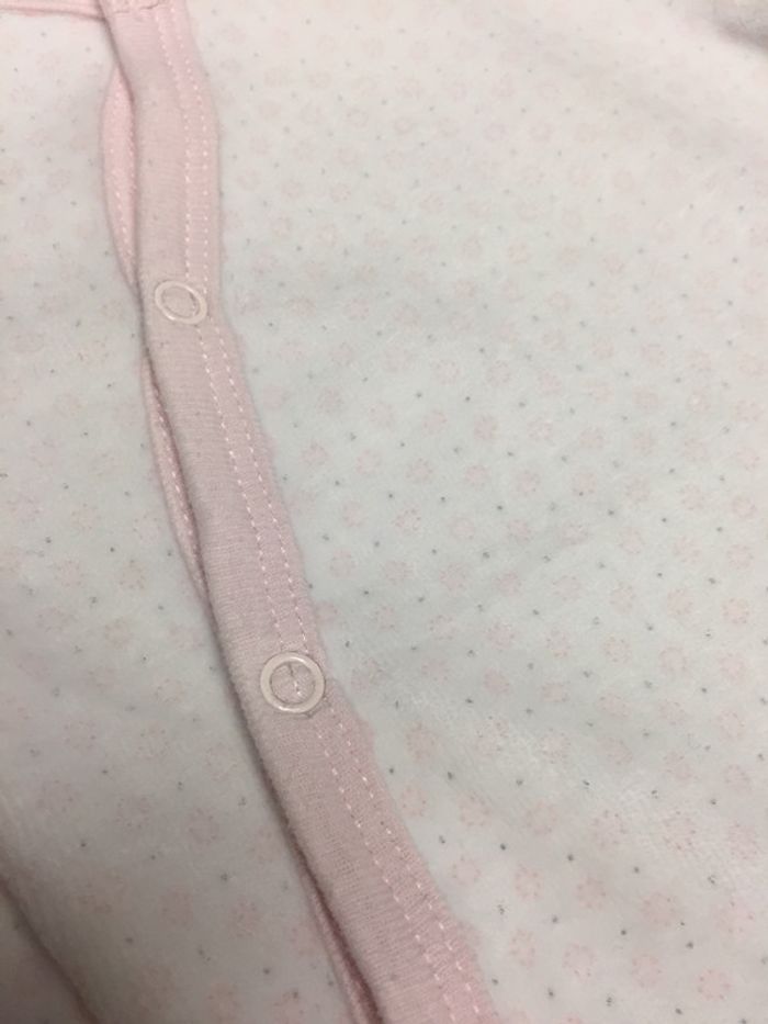 Pyjama blanc et rose avec petits motifs En velours tout doux Ouverture sur le côté pour plus de facilité Marque Tex newborn collection Taille 1-3 mois #sdelandeF1m #sdelandeF3m