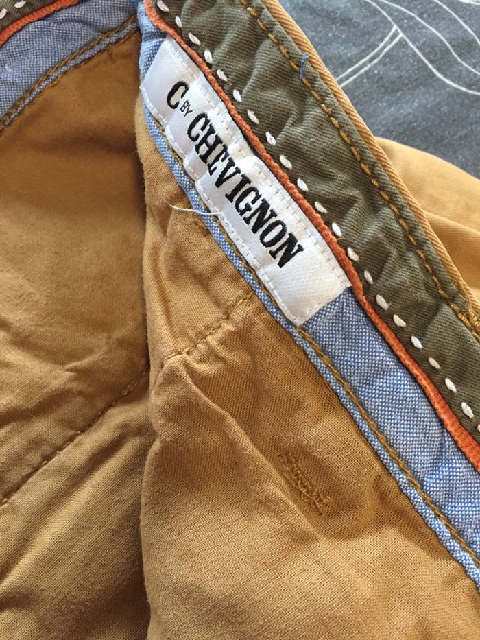 Pantalon style chino de couleur marron clair/ocre Micro tâche presque invisible à l’arrière Marque C by Chevignon Taille 42