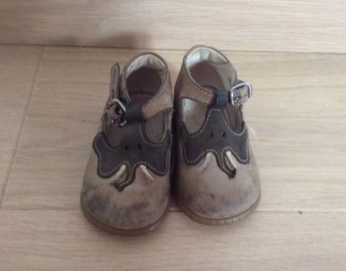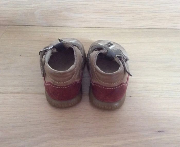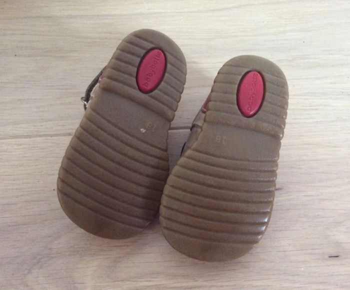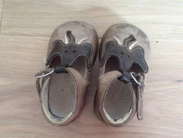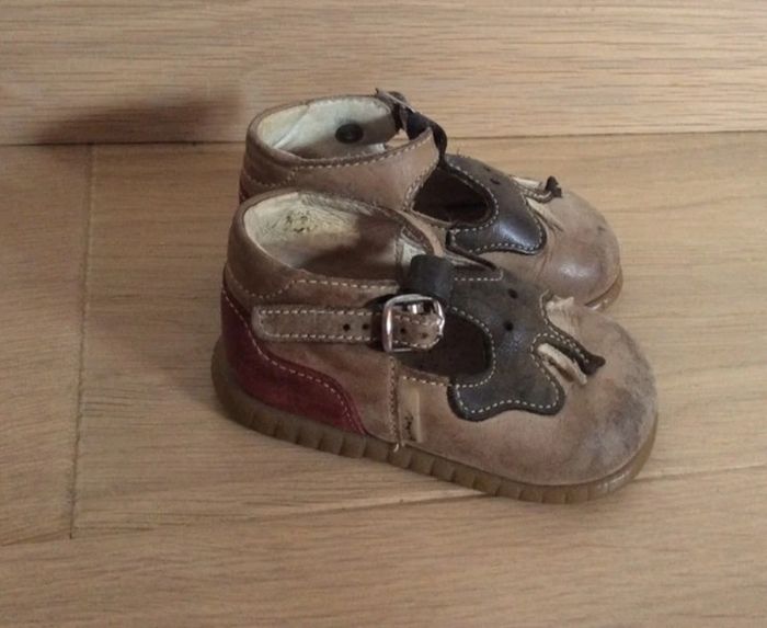 Chaussures forme Salomé marron et rouge avec motif éléphant Marque Babybotte Pointure 18