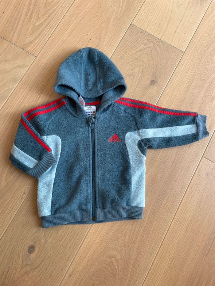 - Gilet polaire rouge sans marque - Gilet à capuche polaire Adidas - Pull rayé dino Sergent Major - Sweat fin marine nounours Sergent Major - Gilet à capuche à rayures Kimbaloo Taille 6 mois