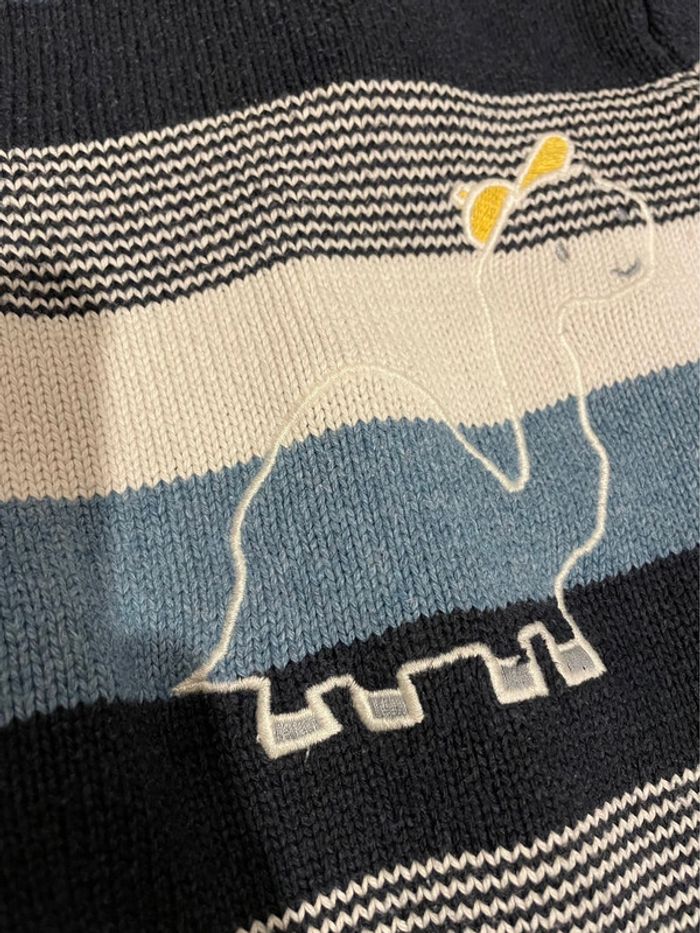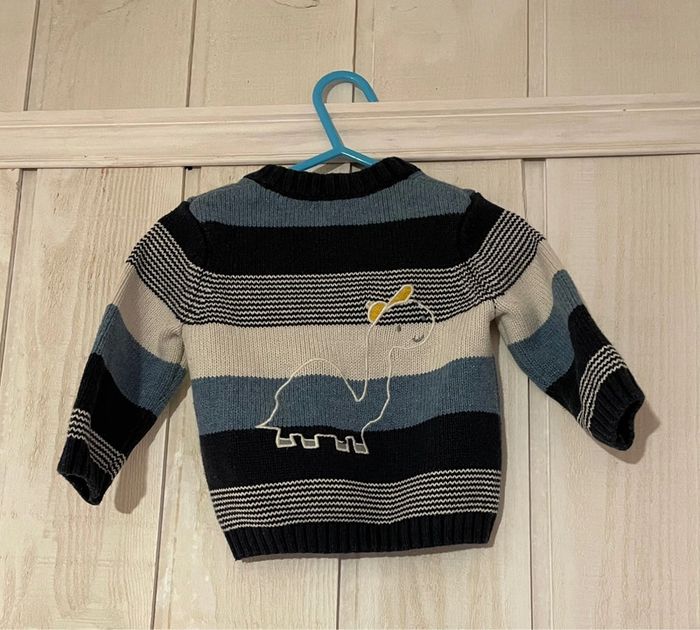 Pull rayé marine/bleu/blanc Motif dino brodé dans le dos Marque Sergent Major Taille 6 mois, 68cm #sdelandeG6m