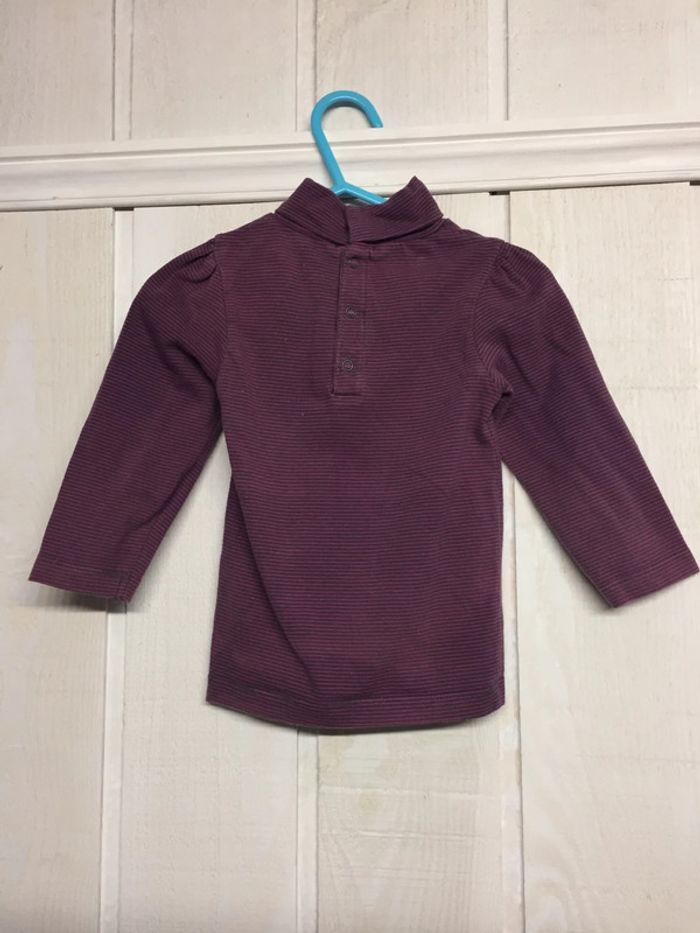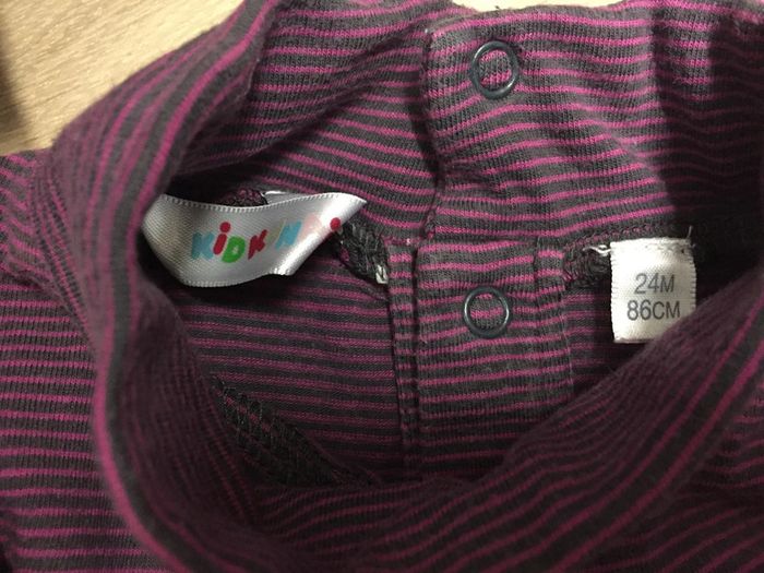 Tee-shirt manches longues rayé à col roulé 3 pressions à l’arrière Petites fronces sur l’épaule Marque Kidkanaï Taille 24 mois/2 ans, 86cm #sdelandeF24m