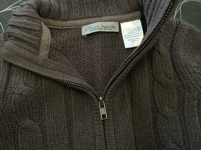 Gilet marron avec « torsades » avec fermeture éclair Un petit peu bouloché Marque À l’heure anglaise (La Redoute) Taille 2 ans, 86 cm #sdelandeG24m