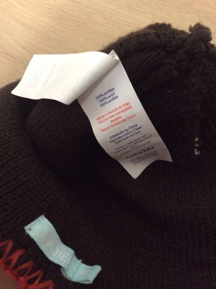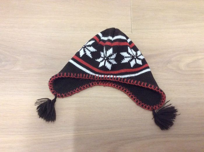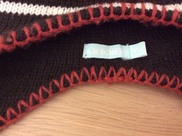 Bonnet marron, blanc et orange de style péruvien Marque Obaïbi (Okaïdi) Périmètre crânien : 45cm #sdelandeG6m #sdelandeG9m #sdelandeG12m