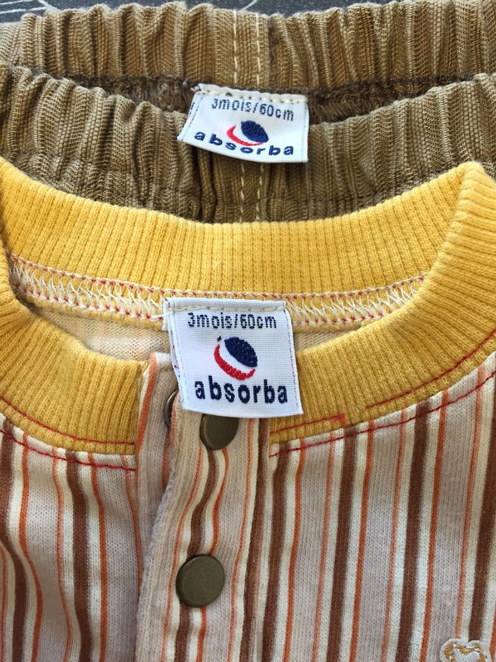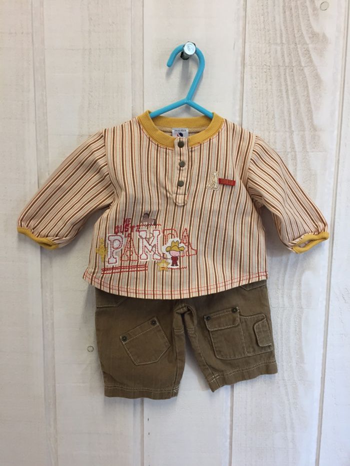 Ensemble composé : - d’un tee-shirt rayé « cow-boy » - d’un pantalon marron taille élastique Marque Absorba Taille 3 mois, 60cm #sdelandeG3m