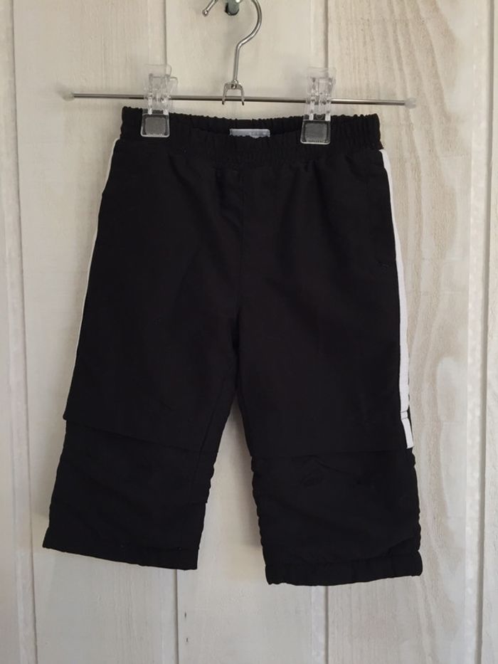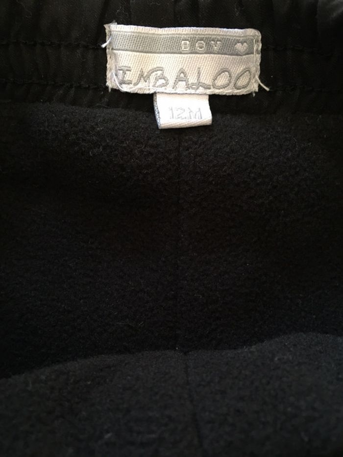 Pantalon noir doublé polaire avec bande blanche sur les côtés, un effet 2 en 1, faux emplacement de fermeture éclair et 2 poches devant Marque Kimbaloo Taille 12 mois/1 an #sdelandeG12m