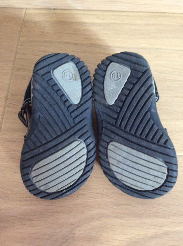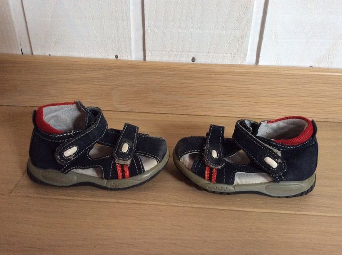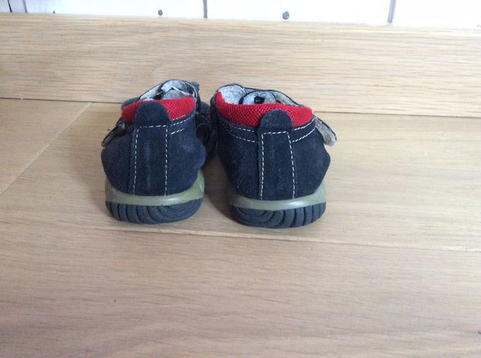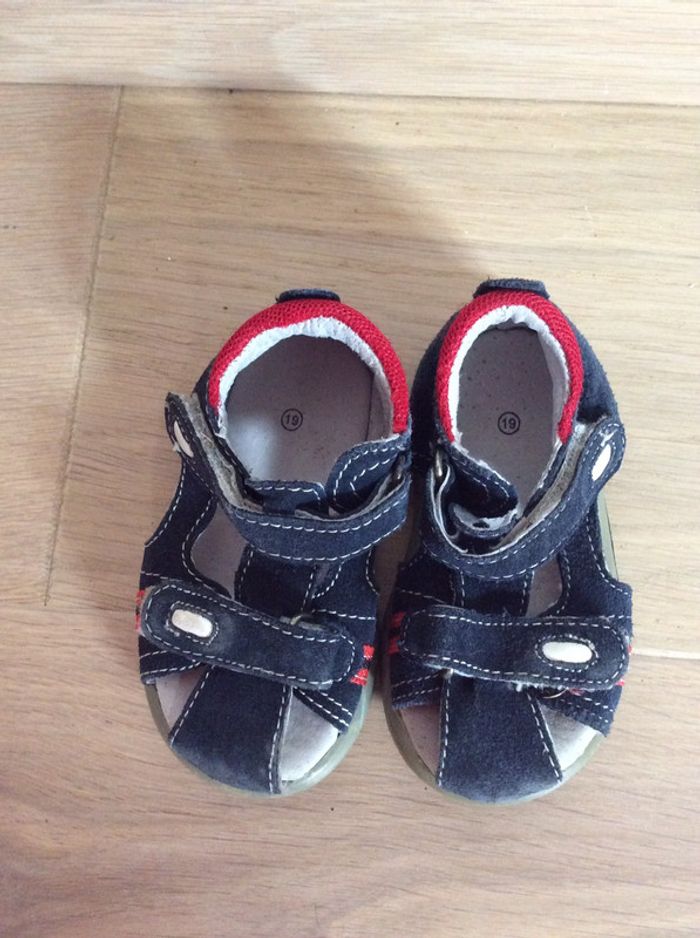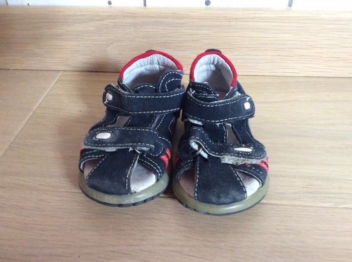 Sandalettes à scratch en cuir bleu marine avec touches de rouge Pas de marque Pointure 19 #sdelandeG9m #sdelandeG12m