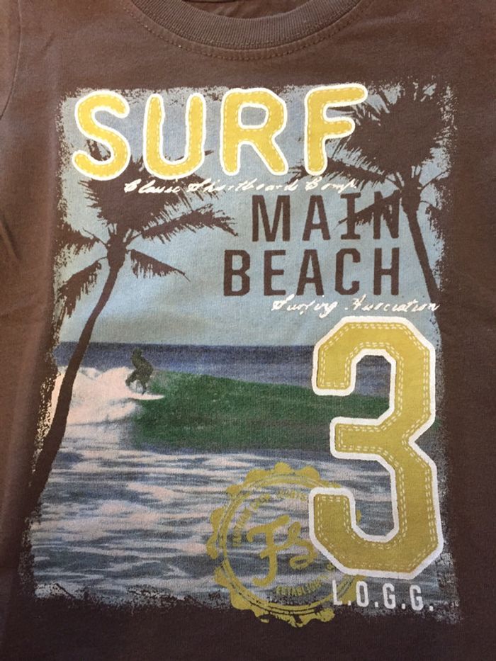 Tee-shirt manches courtes marron avec motif « surf » Marque L.O.G.G (H&M) Taille 4-6mois, 68cm #sdelandeG6m