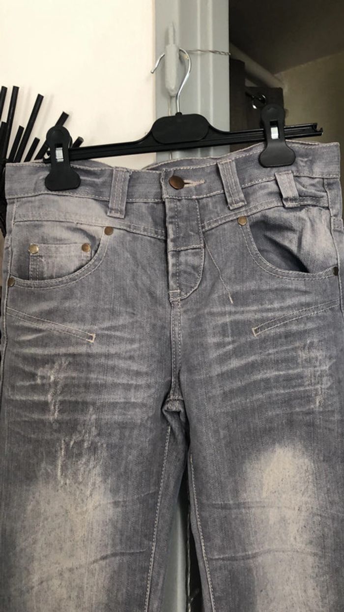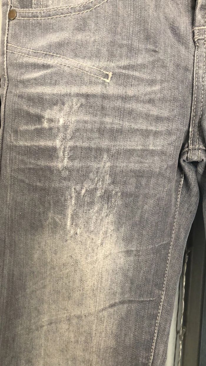 Très bon état dans l’ensemble, légère tâche de stylo au genoux gauche voir photo, d’où le statut bon état Motifs comme des usures aux jambes qui fait l’originalité de ce pantalon