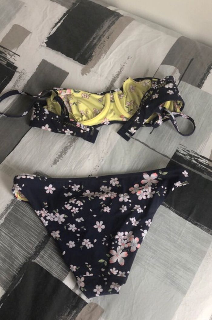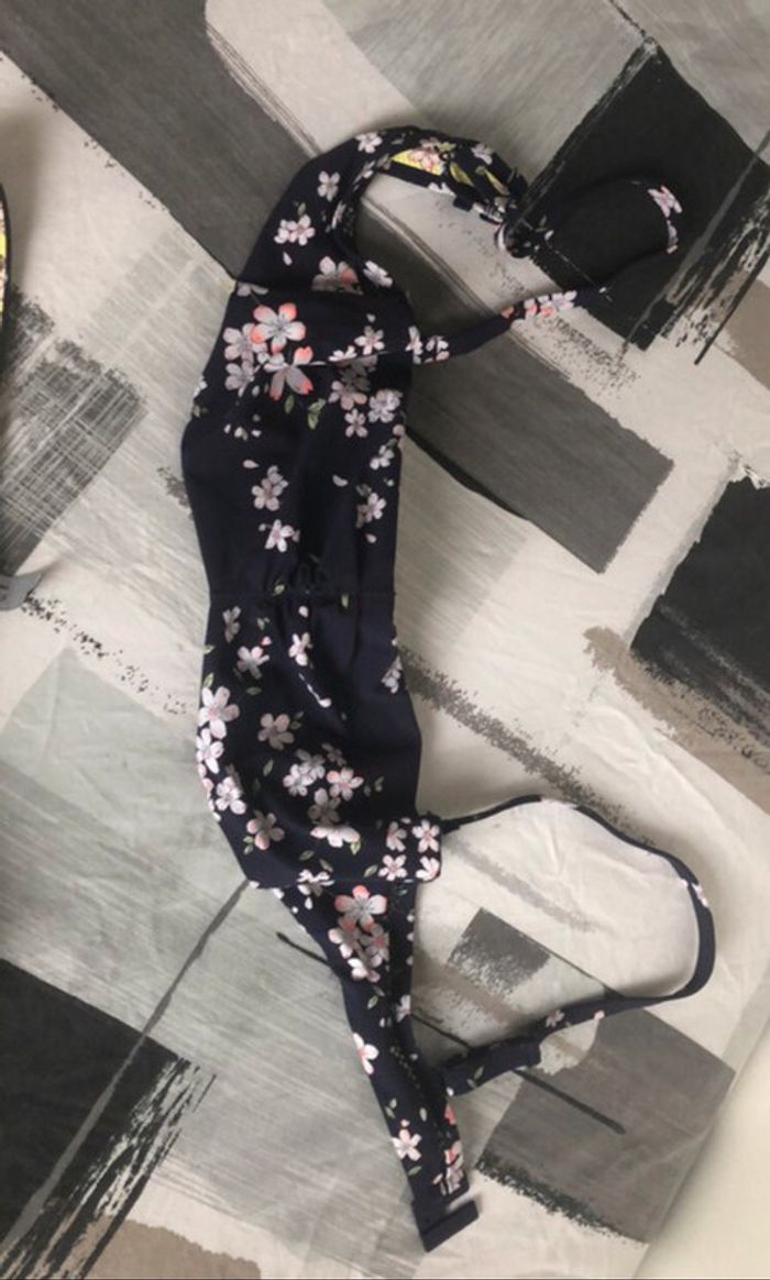 Ensemble maillot de bain Etam bleu marine à fleurs Haut 90C Bas 38 jamais porté mais étiquette coupée aucun lot à -50% ne sera accepté avec cette vente #drey240684vetementsfemmetaille38