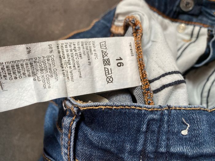 Jeans 511 tm Taille 16 ans 88% coton 2% elasthane Levi Strauss & co San Francisco Peu porté Réglable à la taille La Ceinture mesure à plat sans tirer 35,3 cm, va jusqu'à 43,5 cm en tirant Longueur entre jambes 81,2 cm Longueur côté 103,2 cm Largeur à plat bas des jambes 16,5 cm