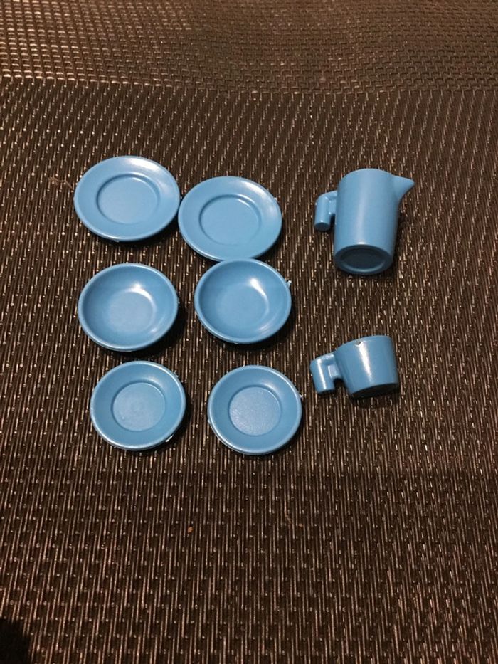 Playmobil lot vaisselle bleue 2 grandes assiettes 2 petites 2 creuses 1 broc 1 tasse maison cuisine - photo numéro 1