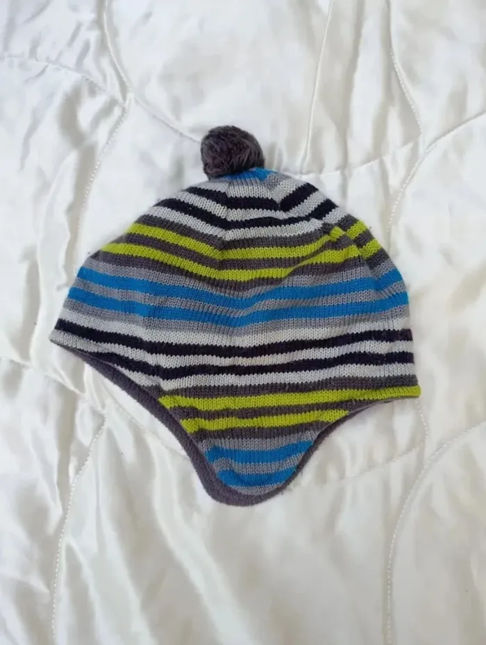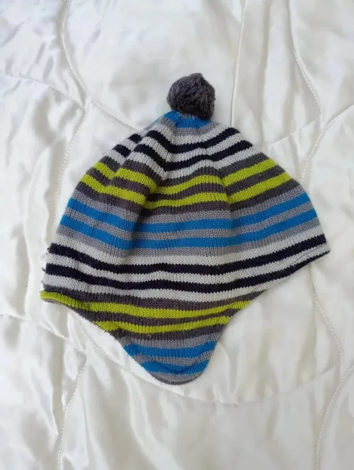 Bonnet rayé multi couleurs pompon NKY 5-6 ans - photo numéro 1