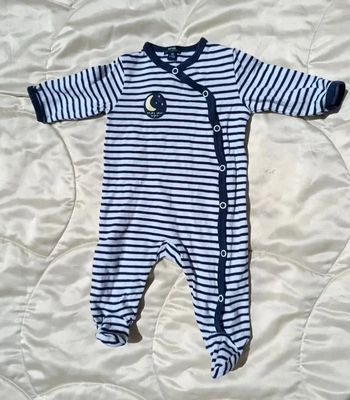 Pyjama manches longues bleu marine rayé blanc Kiabi 3 mois 56 62 cm 6 kg