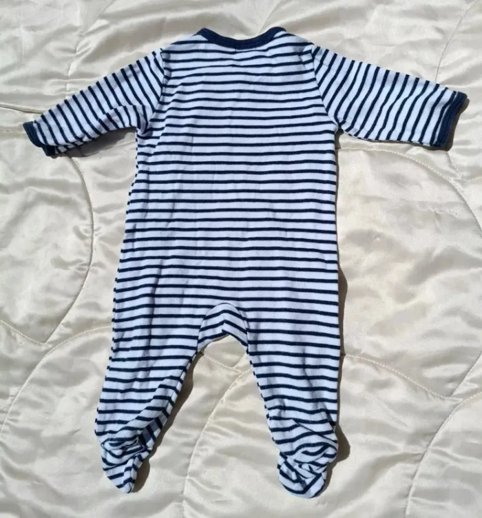 Pyjama manches longues bleu marine rayé blanc Kiabi 3 mois 56 62 cm 6 kg - photo numéro 3