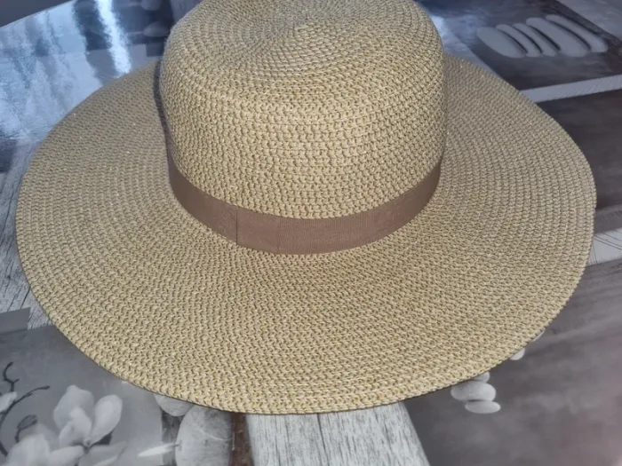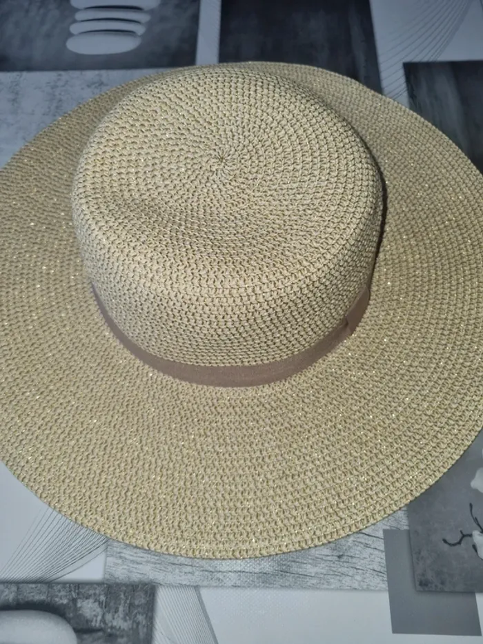 🌸 Chapeau de paille, avec liseré doré . Très bon état #femme #chapeaudepaille #doré #sanmarina #marielauremft_accessoires