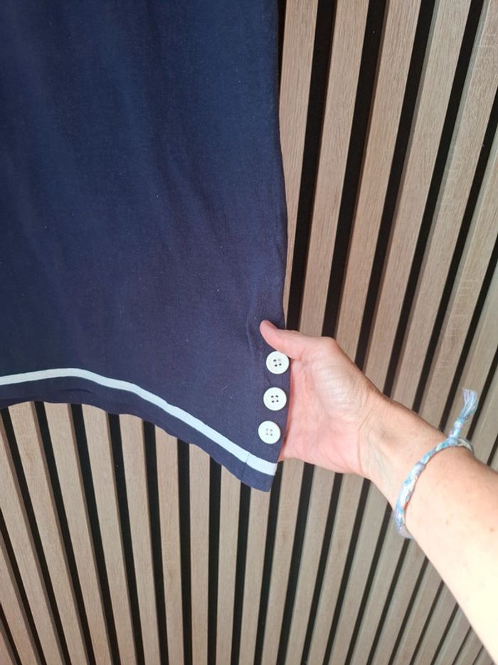 Tee shirt bleu marine esprit marin avec 3 boutons blancs de chaque côté. Vintage T 38 100 % coton Aisselles 50 cm Longueur 68 cm N hésitez à visiter mon profil et laissez vous guider par mes différents # #clemetine13430femmest38 #13430femmest38