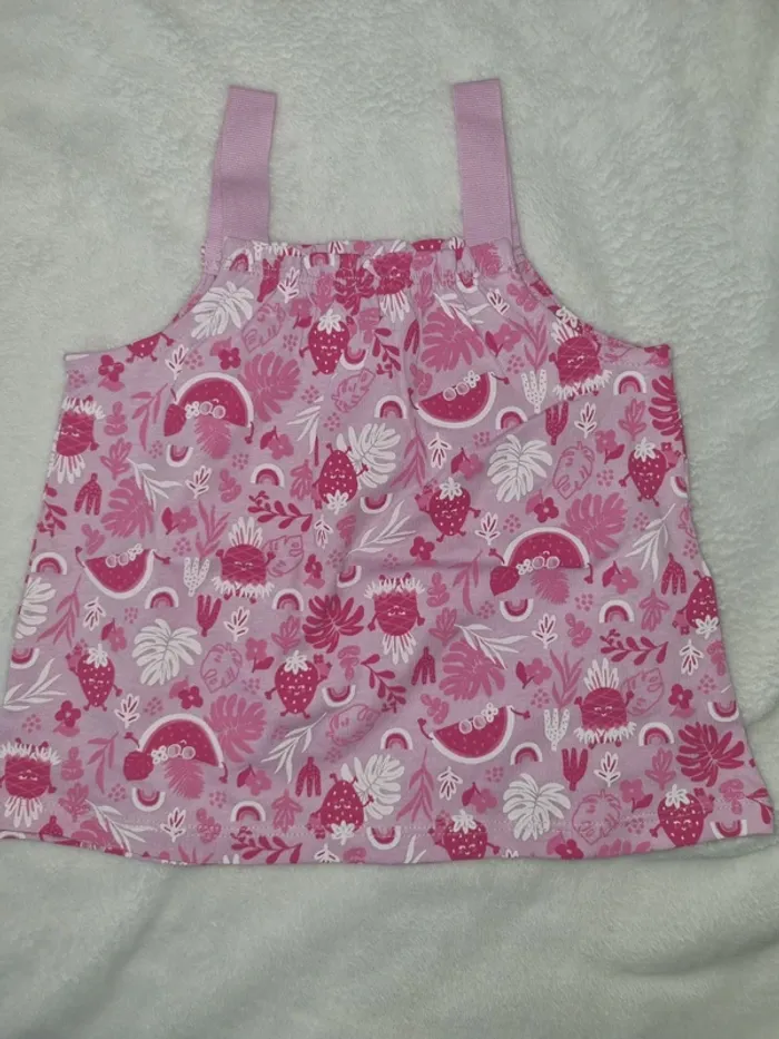 🌸 Débardeur motif fraise . Bretelles épaisse 🌸 Taille 12 mois 80 cm . Neuf sans étiquette 🏷 #bébé #bébéfille #12mois #débardeur #inextenso #marielauremft_taille12mois