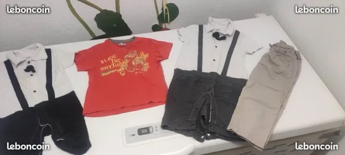 Lot vêtements 2 ans 24 mois composé de 1 tee shirt orchestra rouge 2 combinaison manche courte et 1 pantalon. La petite combinaison grise a une tâche qui s enlève au lavage. envoi très rapide et si vous optez pour une livraison mondial Relay je dépose directement au centre de tri #sylvief95_garcon2ans