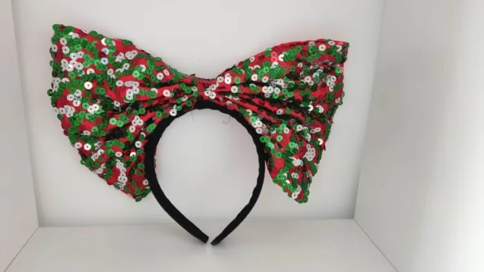 Serre tête avec gros noeud avec sequins envoi très rapide et si vous choisissez l'envoi par mondial relay je dépose au centre de tri mondial relay directement pour réception du colis très rapide
