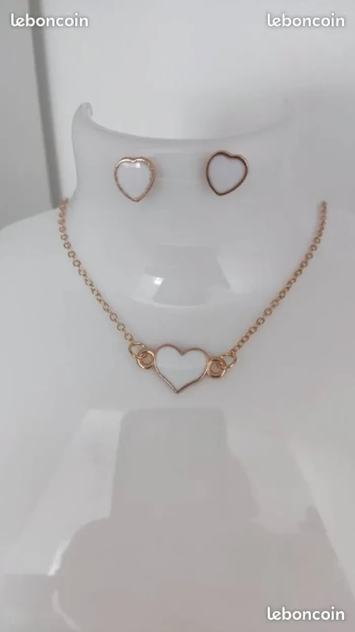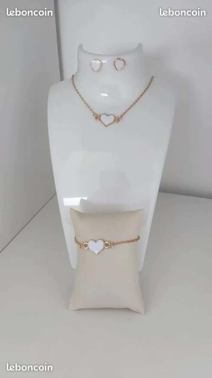 Magnifique parure de bijoux composée 1 bracelet doré avec cœur blanc 1 collier doré avec cœur blanc 1 Paire de boucles d oreilles avec cœur blanc Vendu dans écrin rouge idéal pour cadeau envoi très rapide et si vous choisissez l'envoi par mondial relay je dépose au centre de tri mondial relay directement pour réception du colis très rapide #sylvief95_bijoux