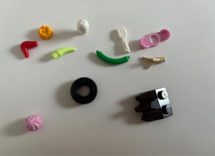 Lot comprenant: - 3 grenouilles rose - 1 morceau d’écorce marron - 2 bâtons (marron et vert) - 1 roue - 1 fourchette blanche Etc… Lego lot 4 #mejugejouets