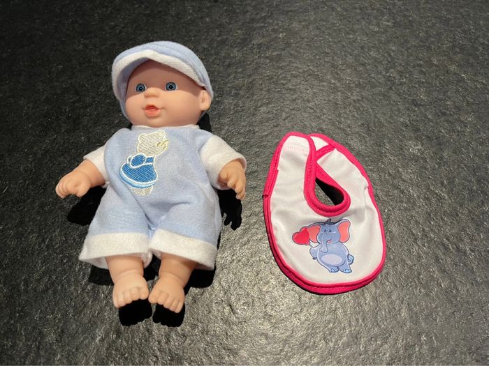 Poupon avec tenue et bavoir Très peu utilisé Comme neuf #mejugejouets