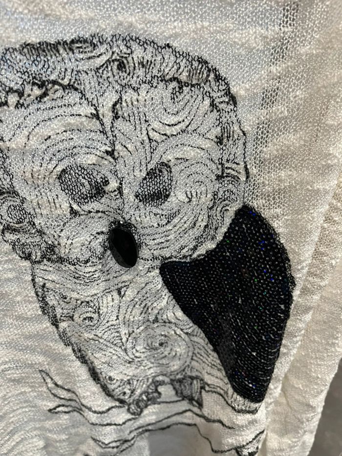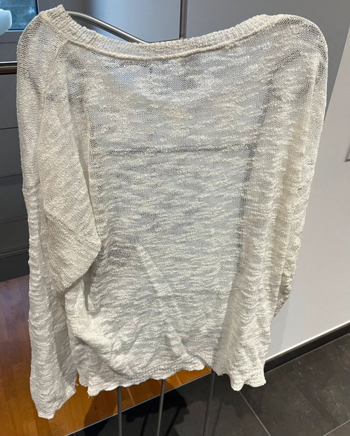pull mailles fines légèrement transparent motif chouette avec strass et grosse perle plastique pour le bec 75% acrylique 25%polyamide excellent état longueur:66cm taille L msmode correspond a un 44/46 #mejugetaille46