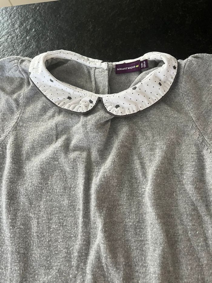 Manches courtes Fermée par bouton à l’arrière Col claudine motif chats et pois Fausses poche à l’avant Longueur : 72cm 52% polyamide 48% viscose 10%laine Excellent état #mejuge9ans