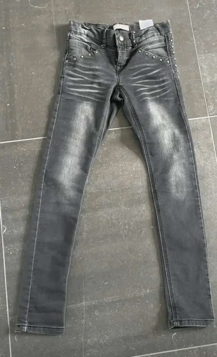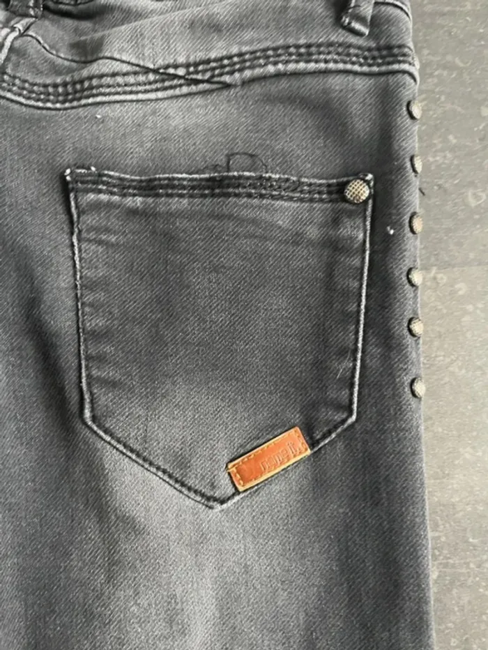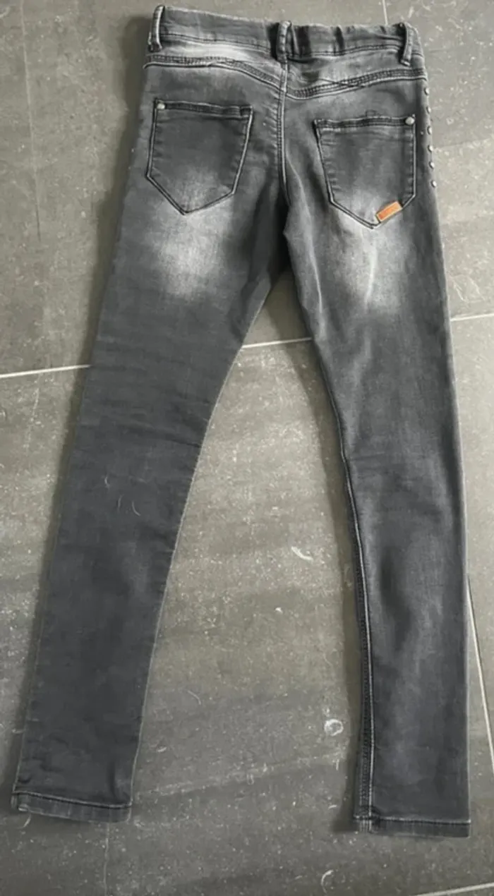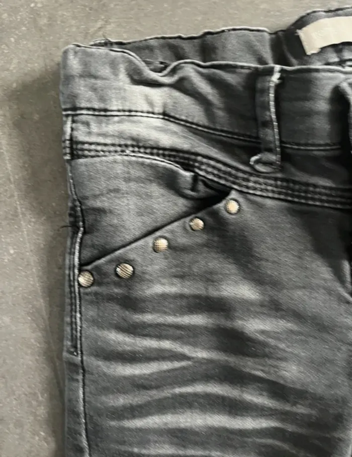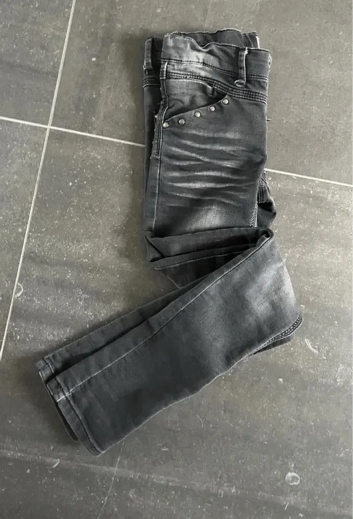Jeans slim noir 11 ans Effet délavé sur les cuisses et haut de cuisses Deux poche avant et arrière Fermé par zipp et crochet Clous déco sur les cotés Excellent état #mejuge11ans
