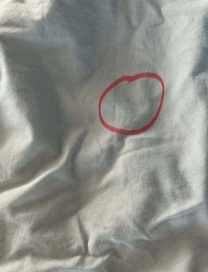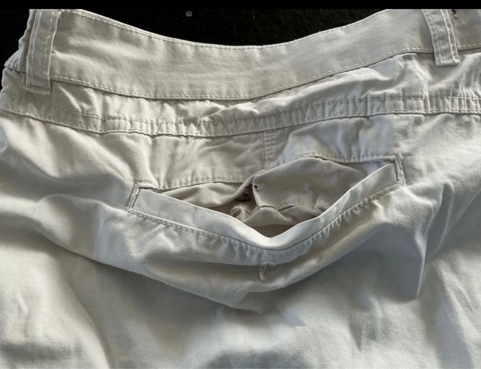 Fermé par zip et bouton Deux poches plaquées côtés Deux poches arrière (l’une manque le bouton voir photo) Mini tâche non visible porté (voir dernière photo entouré en rouge sur la photo) Tour de taille 130cm Sinon excellent état