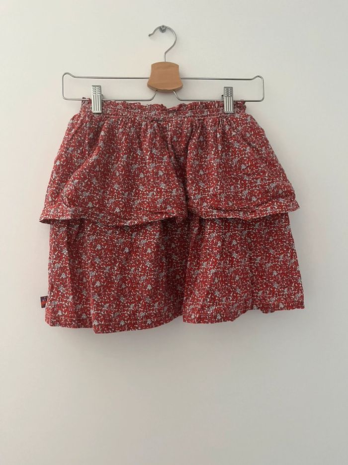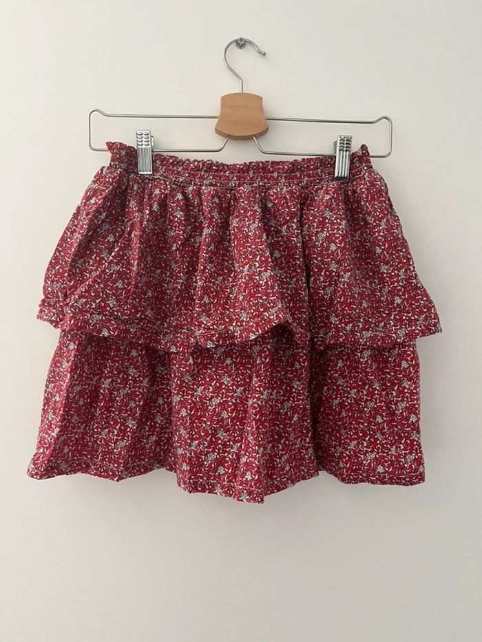 Jupe taille élastique à volants Motif fleurs rouge Excellent état #mejuge11ans
