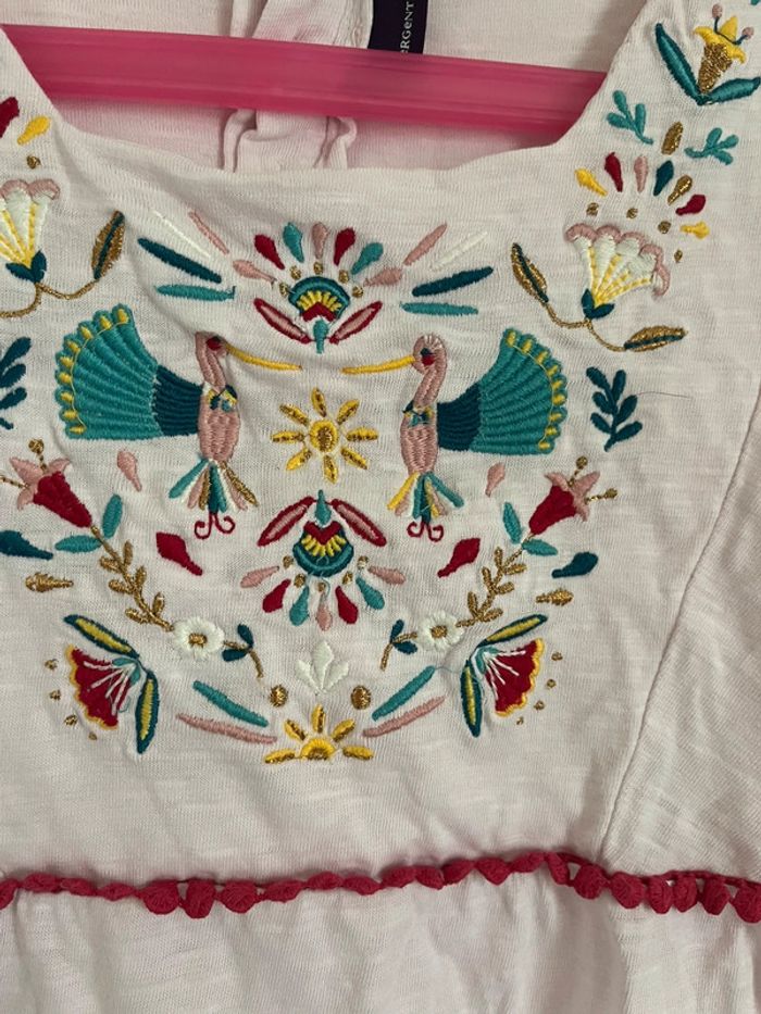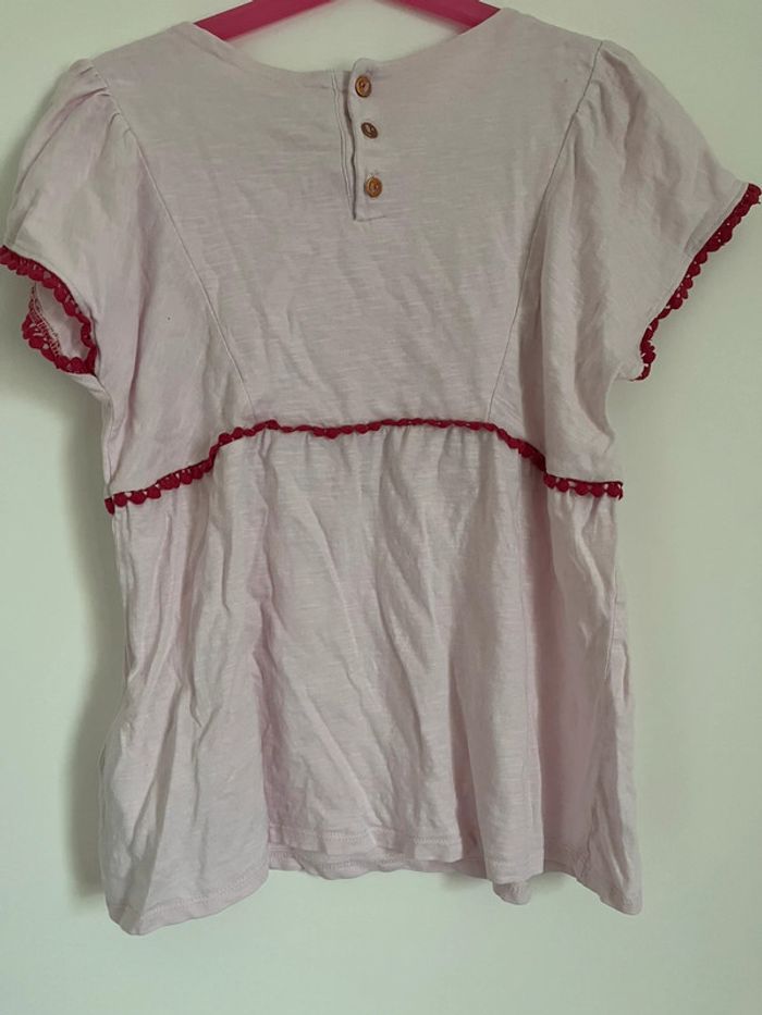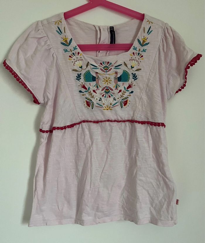 Blouse/t-shirt rose motif fleurs et oiseaux Fermé par bouton Excellent état 100%coton #mejuge11ans