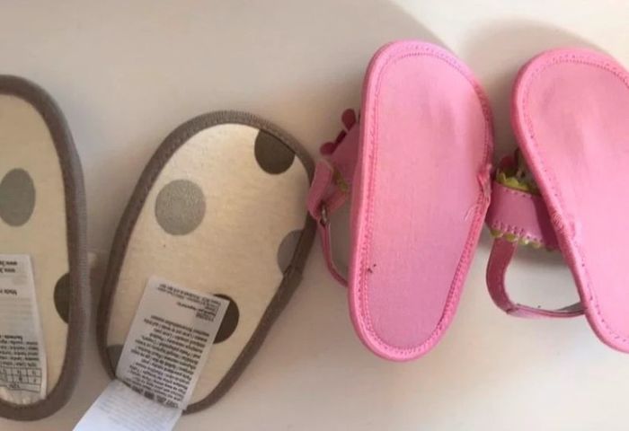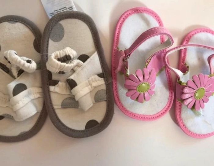 deux paire de sandales une blanc a pois neuve jamais portée mai tache jaune à l’intérieur du au stockage ( voir photo) une paire semelle effet eponge attache avec scratch (Carton3) #mejugechaussurespointure18 #mejuge12mois