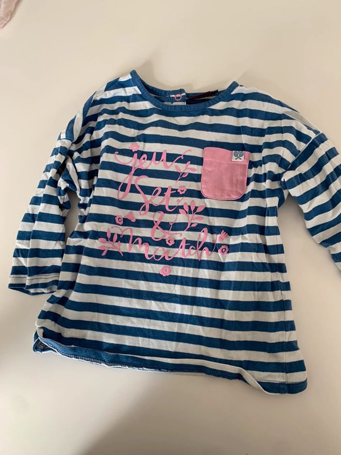 Lot comprenant : - 1 t-shirt manches longues motif fée avec col sergent major 6ans - 1 blouse rose sergent major 7ans - 1 t-shirt manches longues violet motif chat okaidi 6ans - 1 t-shirt à rayure manches 3/4 sergent major 6ans - 1 jupe marine sergent major 6ans - 1 jupe rose in extenso 6ans L460 #mejuge6ans