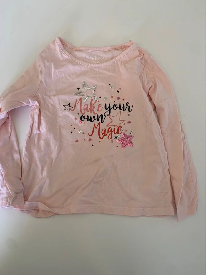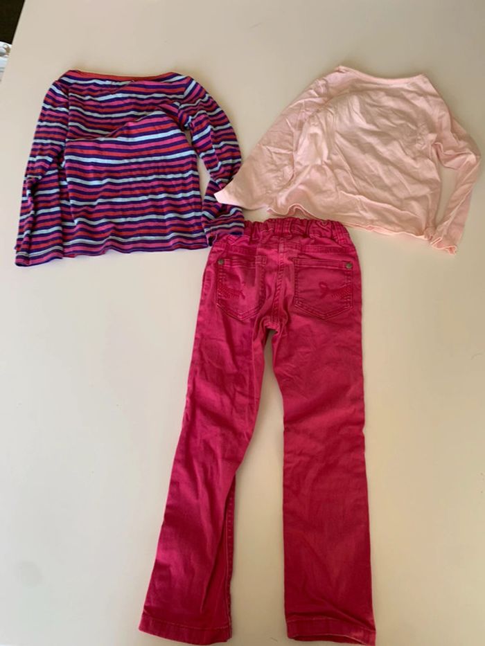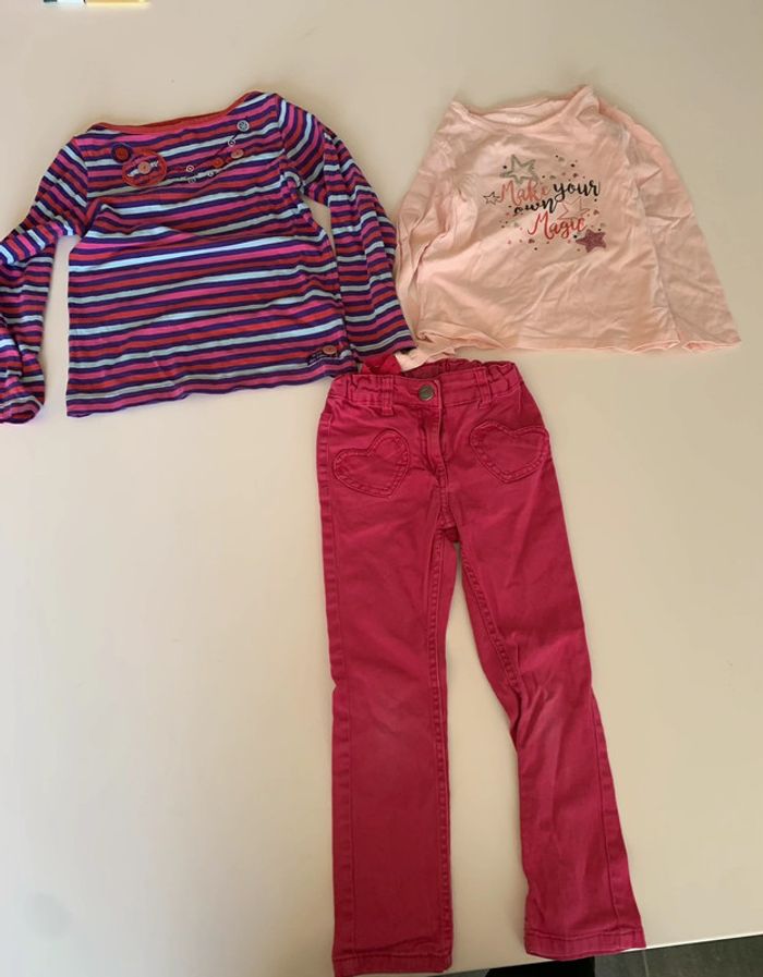 Lot comprenant : - 1 pantalon rose lupilu 4/5ans - 1 t -shirt à rayure la compagnie des petits - 1 t- shirr rose in extenso L454 #mejuge5ans