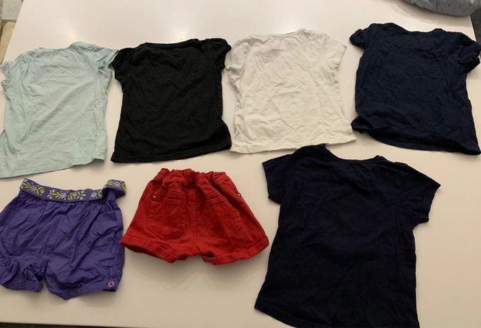 Lot comprenant : - 1 short rouge young dimension - 1 short bleu kidkanaï - 1 t-shirt bleu motif baskets lisa rose - 1 t-shirt motif rose paris baseball - 1 -shirt noir la hall - 1 t-shirt marine motif étoile Primark 5-6 ans - 1 t-shirt marine motif fleurs Tissaia L446 #mejuge5ans