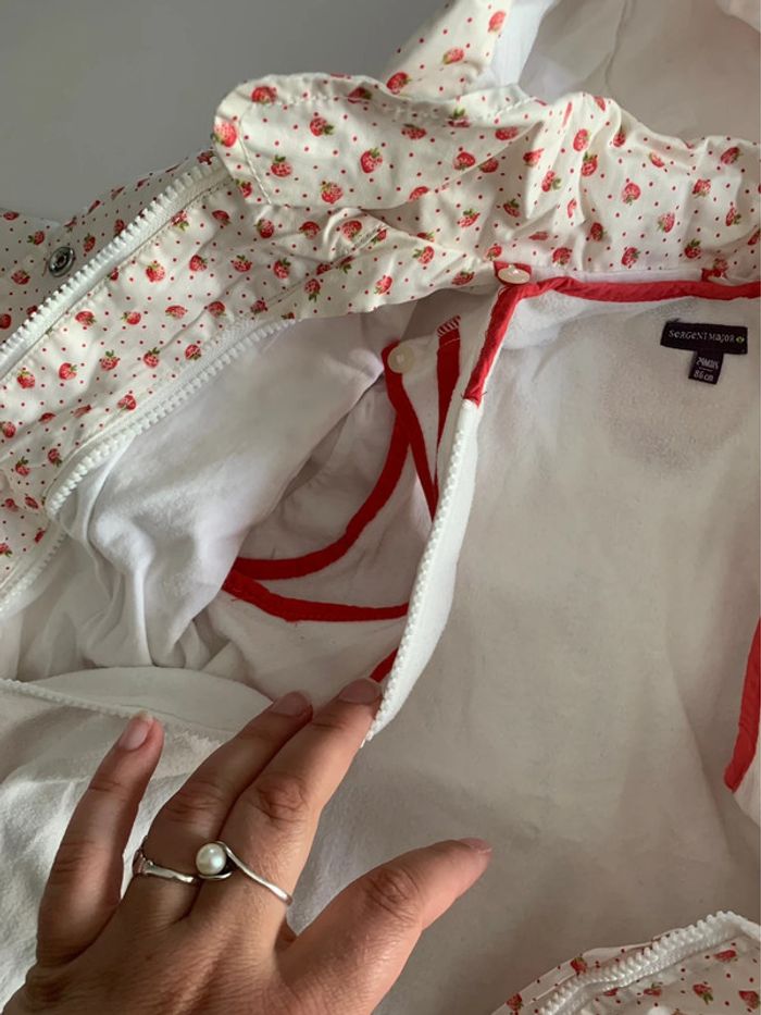 Veste/imperméables motifs fraise avec capuche Fermée par zipp et pressions Doublure intérieur amovible pour adapter à la saison M14 #mejuge24mois