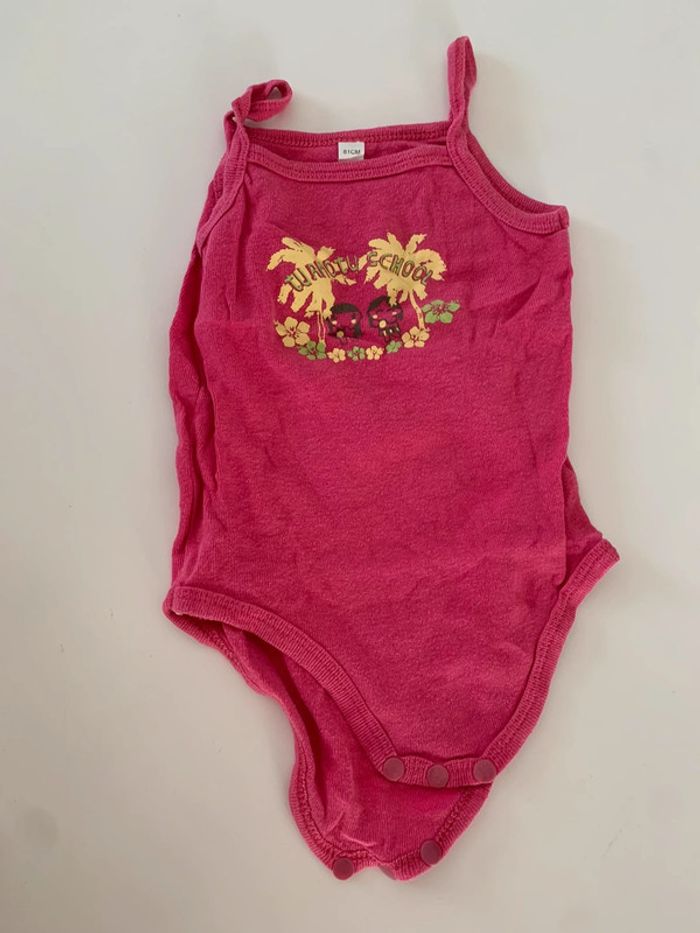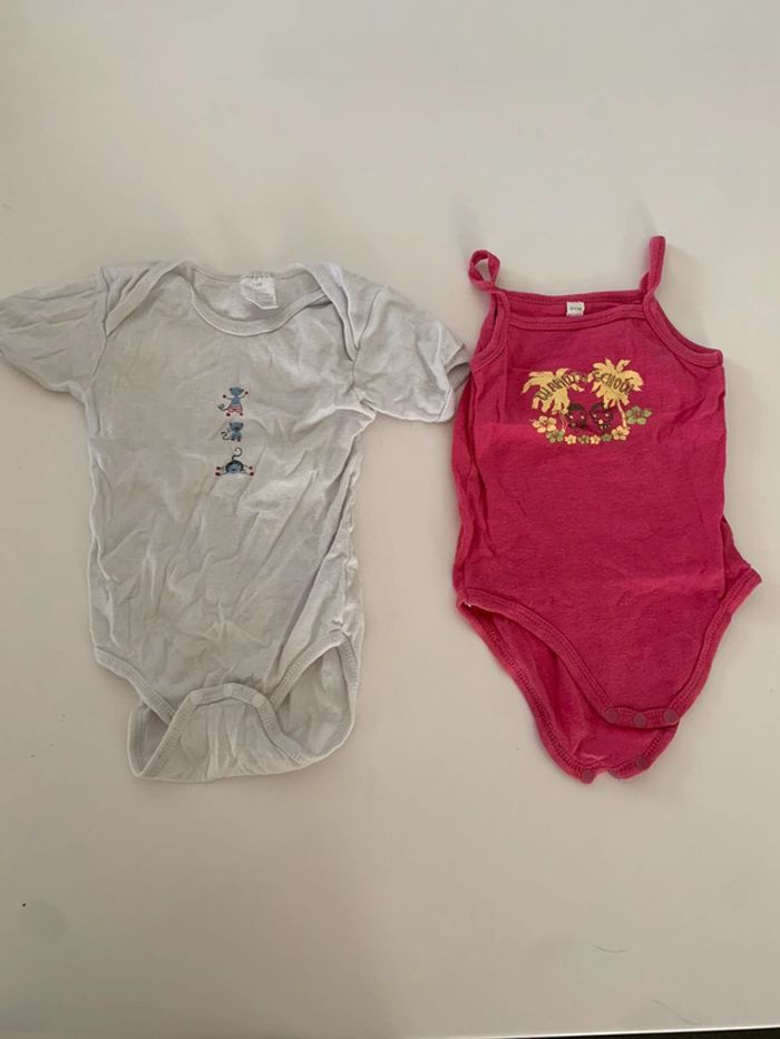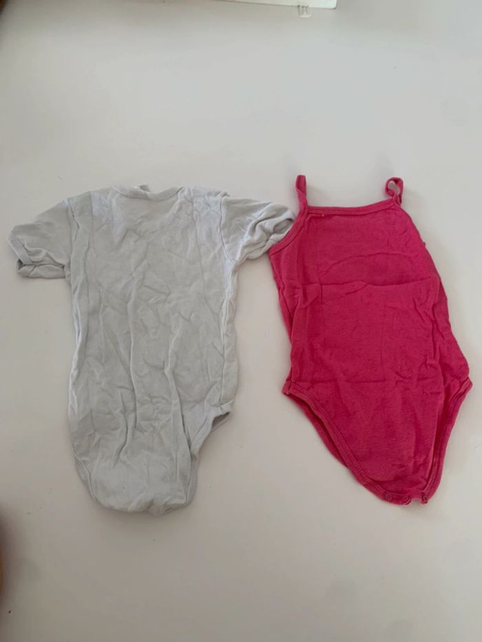 Lot comprenant: - 1 bodie rose à bretelles - 1 bodie blanc manches courtes L80 #mejuge18mois