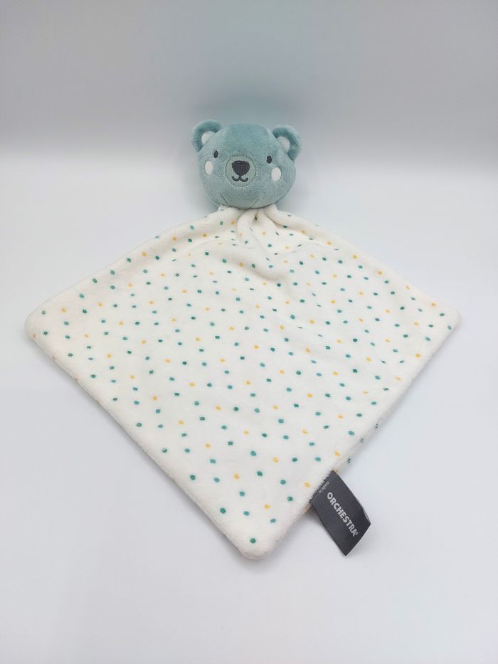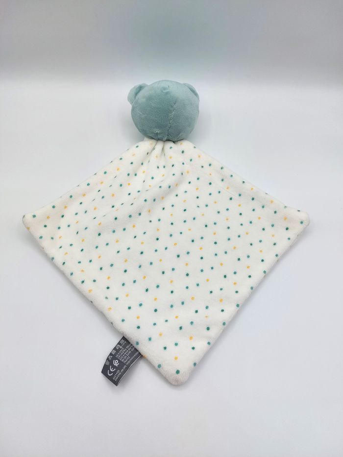 Doudou plat ours bleu vert blanc pois ORCHESTRA PREMAMAN