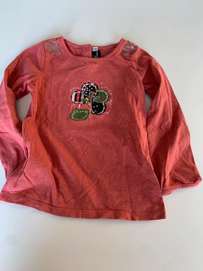 Lot comprenant: - 1 t- shirt manches longues motif fleurs sergent-major - 1 t-shirt manches longues eose à pois petit col tex - 1 gilet marron kidkanaï - 1 jupe la compagnie des petits L303 #mejuge4ans