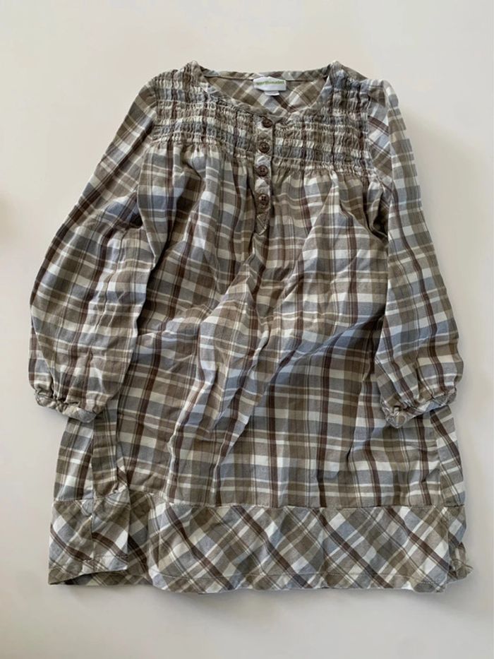 Lot comprenant: - 1 robe en jeans fermée par pressions motifs étoiles lisa rose - 1 robe à carreaux marron/beige/rose verbaudet - 1 robe carreaux gris/kaki/beige verbaudet L287 #mejuge4ans