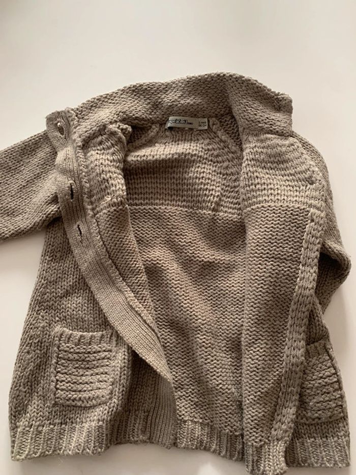 Gilet marrons clair fermé par 4 boutons (manque 2 voir photo) sur le haut Deux poche côté 85% acrylique 15%laine L199 #mejuge36mois