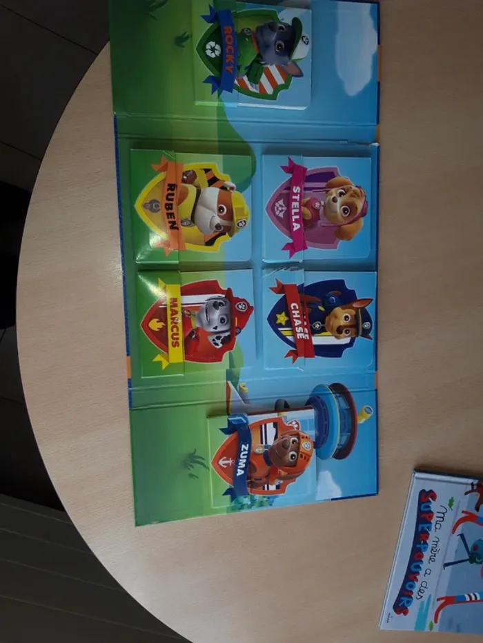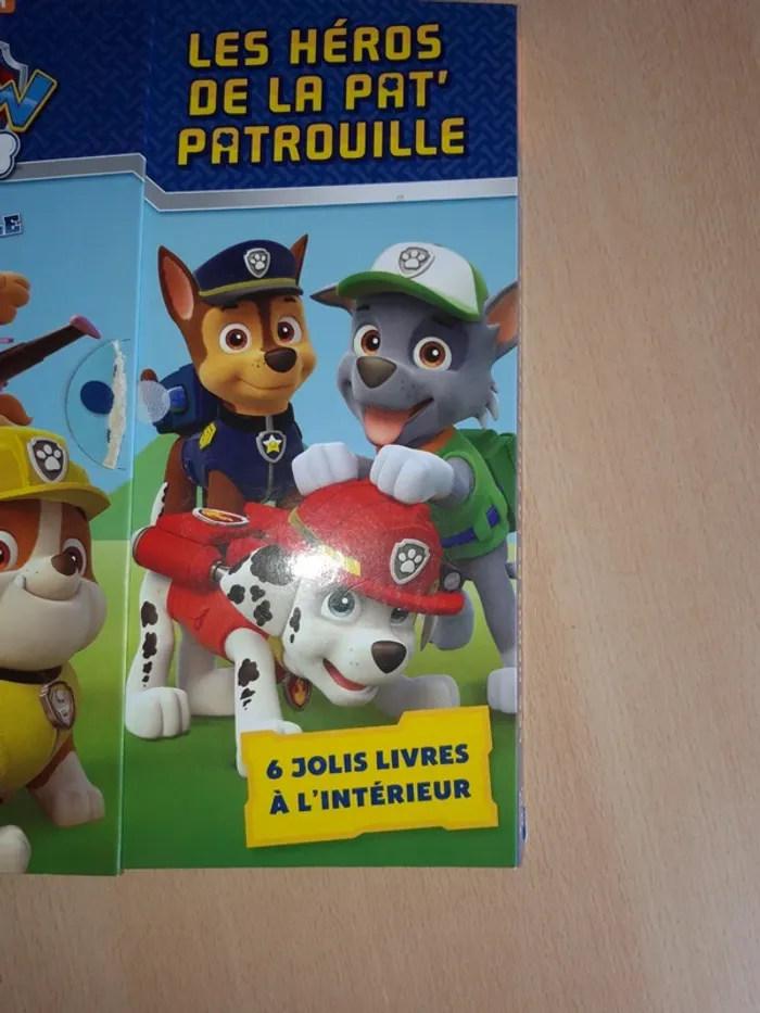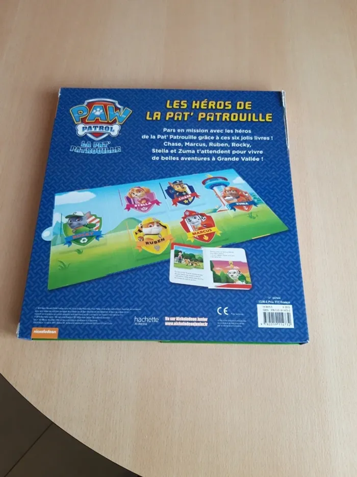 Dans une pochette. Albums cartonnés Hachette jeunesse Paw patrol Le livre de Marcus présente une pliure sur la couverture. Les 5 autres livres sont en très bon état. La pochette est abîmée, recollée...