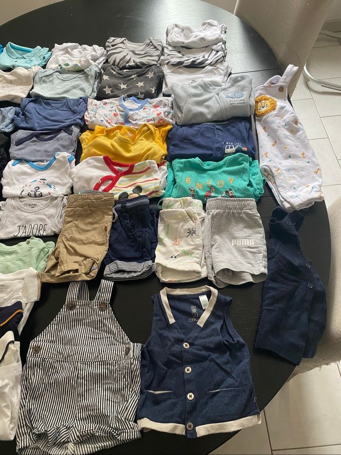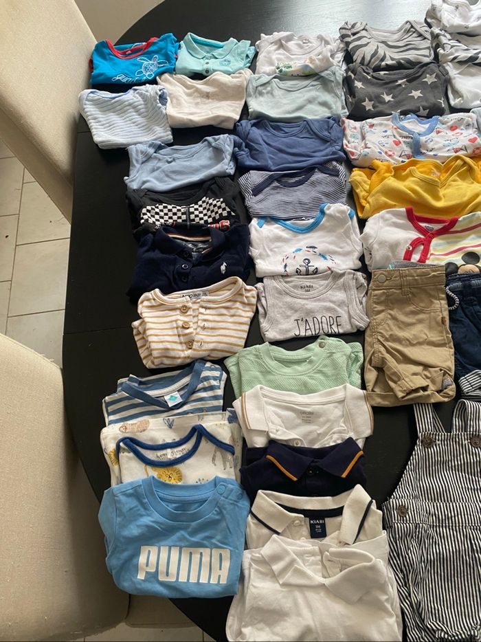 🌸 lot de vêtements été 3 mois (40 vêtements) -8 t-shirting/ polos -4 shorts -3 salopettes -6 pyjamas fin -19 bodies manche courte 🌸taille: 3 mois 🌸 marque: puma, Kiabi, Primark, Disney, Obaïbi… 🌸 état: parfait état 📦 envoie rapide & soigné 📦 🏠 maison non fumeur 🐕maison sans animaux