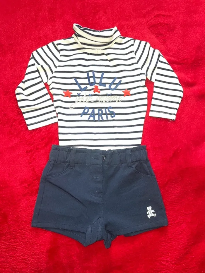 Ensemble short marine et col roulé marinière Lulu Castagnettes T12mois très bon état